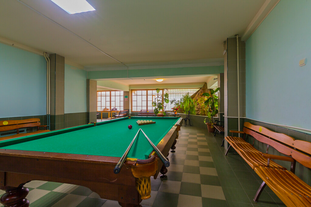 Бильярд — старинная игра, которая помогает не только поднять настроение ее любителям, но и значительно улучшить многие показатели здоровья. В процессе такого времяпрепровождения тренируется внимательность, координация движений, а также подвижность суставов. Если вы никогда не играли в бильярд, то у вас будет возможность приобщиться, находясь на лечении в «Лесной поляне». В санатории Пятигорска оборудована современная бильярдная, где бесплатно любой гость может поучаствовать в этой увлекательной игре.