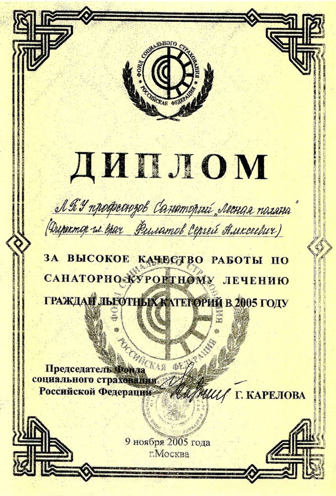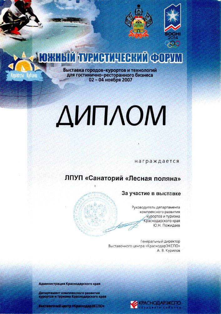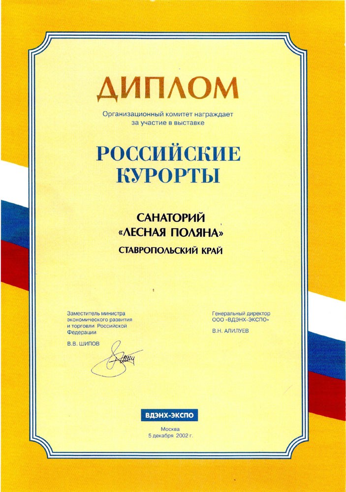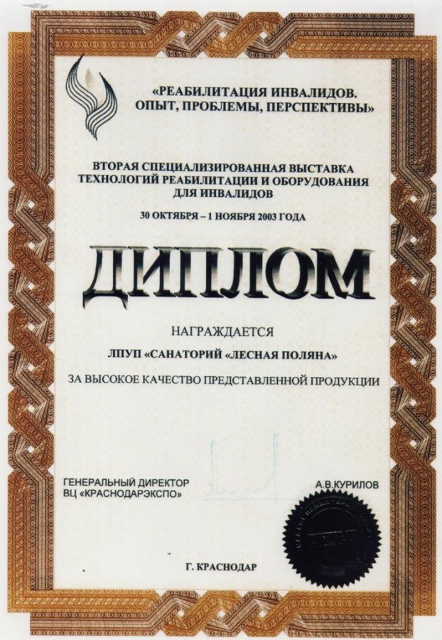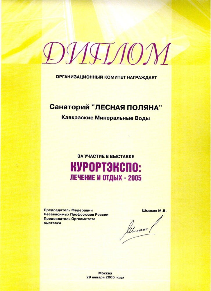 Диплом выставки «КУРОРТЭКСПО: лечение и отдых — 2005», 2005 г.