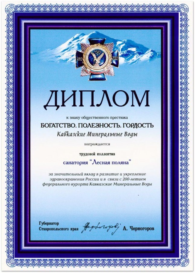 Диплом Губернатора Ставропольского края к знаку «Богатство. Полезность. Гордость»