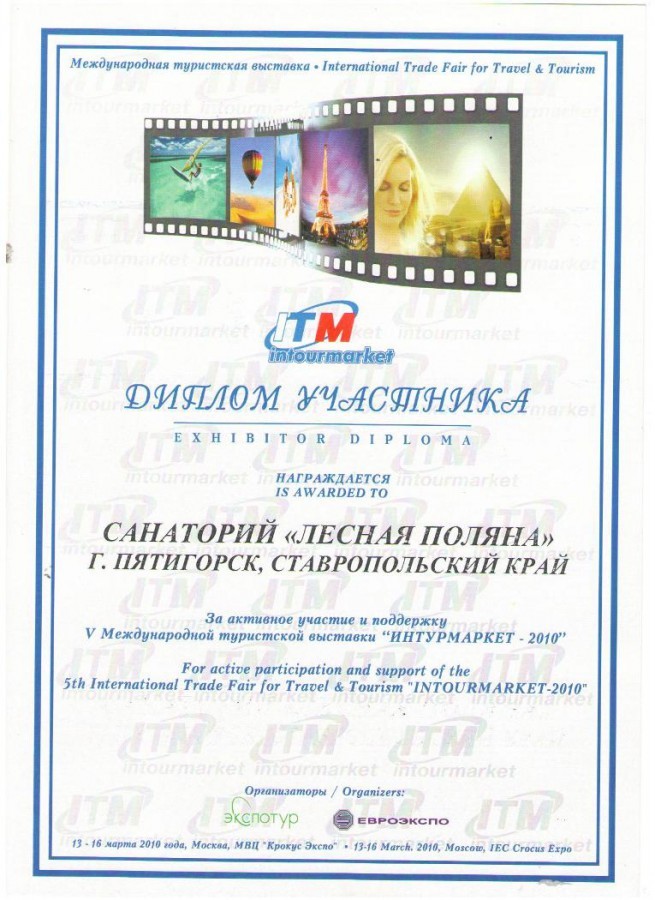 Диплом международной туристской выставки «Интурмаркет-2010»