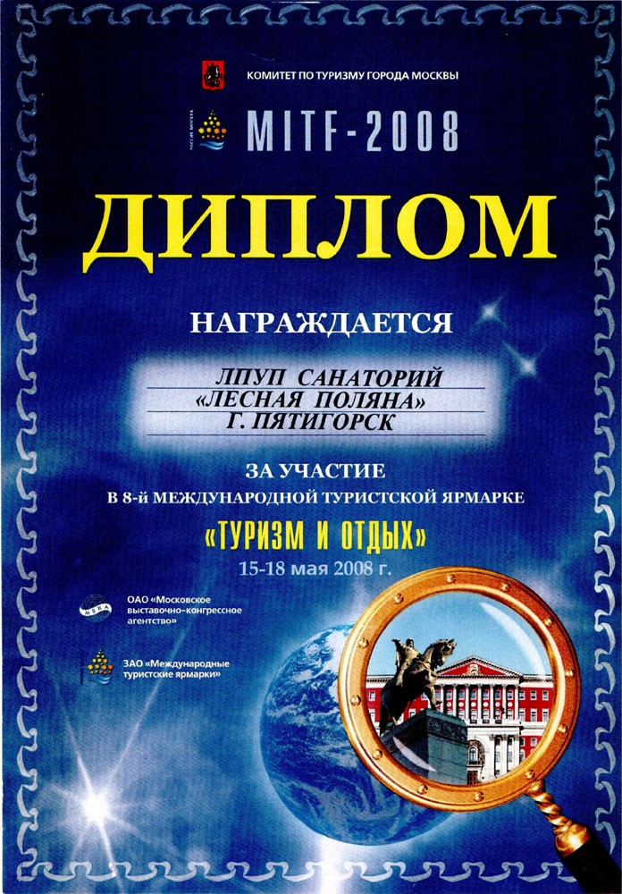 Диплом 8-й международной туристской ярмарки «Туризм и отдых»